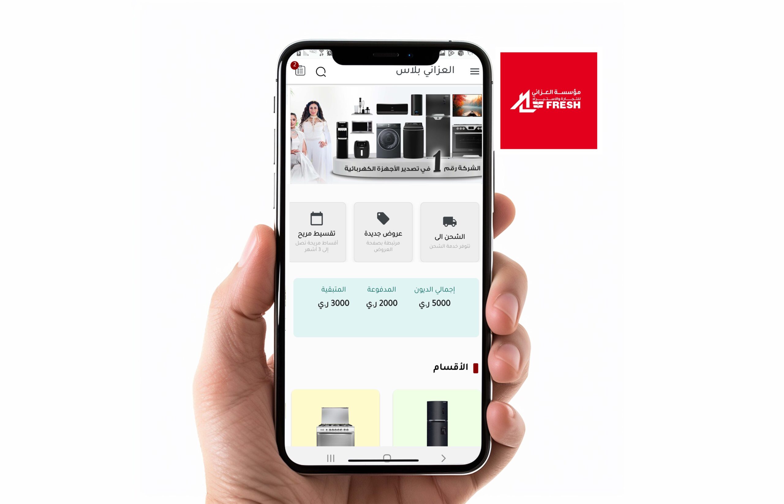 تطبيق مؤسسة العزاني – منصة B2B لطلب الأجهزة الكهربائية (وكيل Fresh في اليمن)